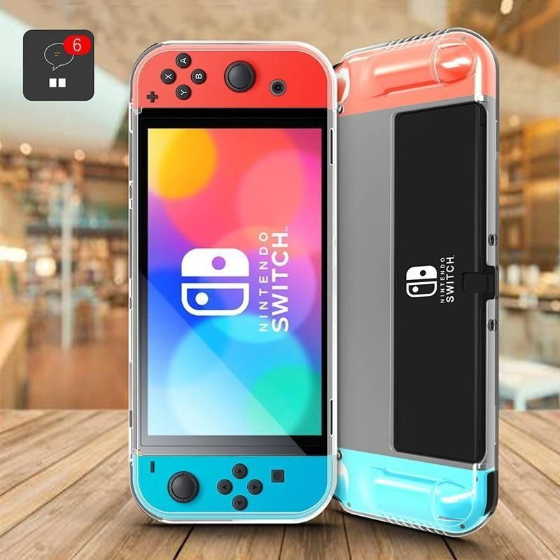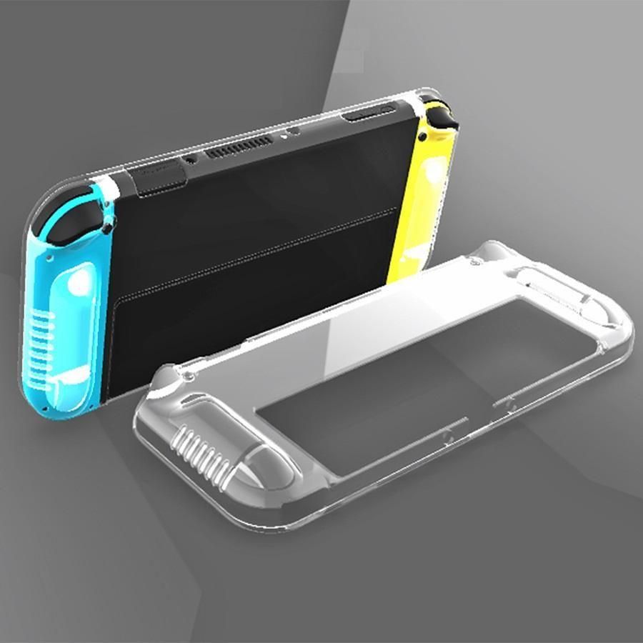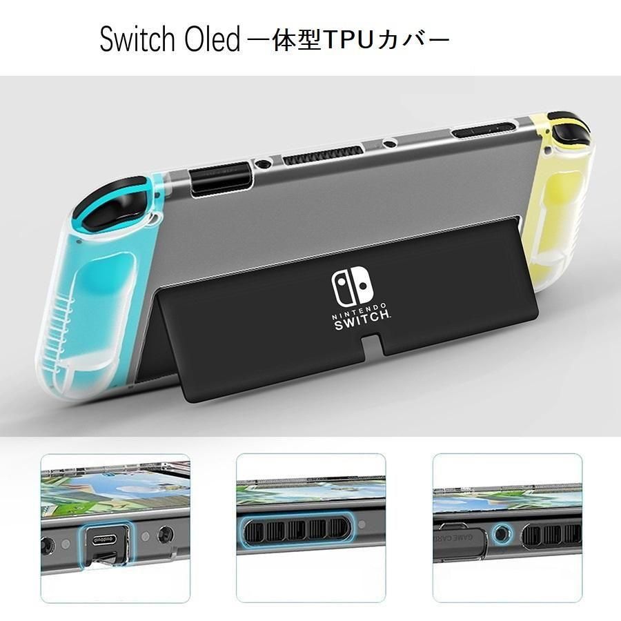 Nintendo Switch OLED用 スタンド対応 TPU ケース クリア ソフト バック カバー 透明 背面 ケース 落下防止 衝撃吸収 擦り傷防止 フルカバー スイッチ コントローラーカバー セット (スタンド対応フルカバー、コントローラー分離式)2タイプ選択