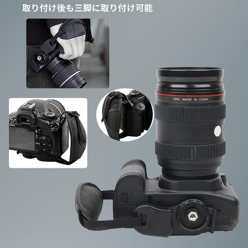 一眼レフカメラ用 片手固定 1/4ネジ ハンドストラップ ナイロン 1/4ネジ穴対応 撮影安定 PU革 リストストラップ ハンドグリップ 落下防止 ホルダー 速写 アクション クッション ハンドベルト 分離 取り外し 調整 可能 DSLR ミラーレス コンパクト デジカメ など