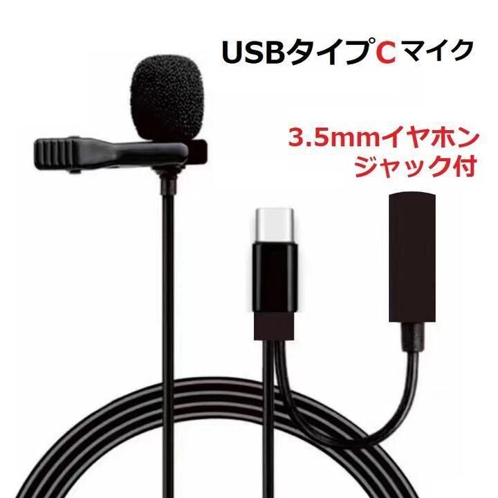 Type-Cラペルマイク 2in1 3.5mmイヤホンジャック付 ピンマイク ミニマイク クリップ式 スマホマイク 高性能 YouTube Vlog 動画撮影 生放送 カラオケ録音 ゲーム実況 インタビュー チャット用マイク 収納ポーチ付属 1.5m for Android/カメラ対応
