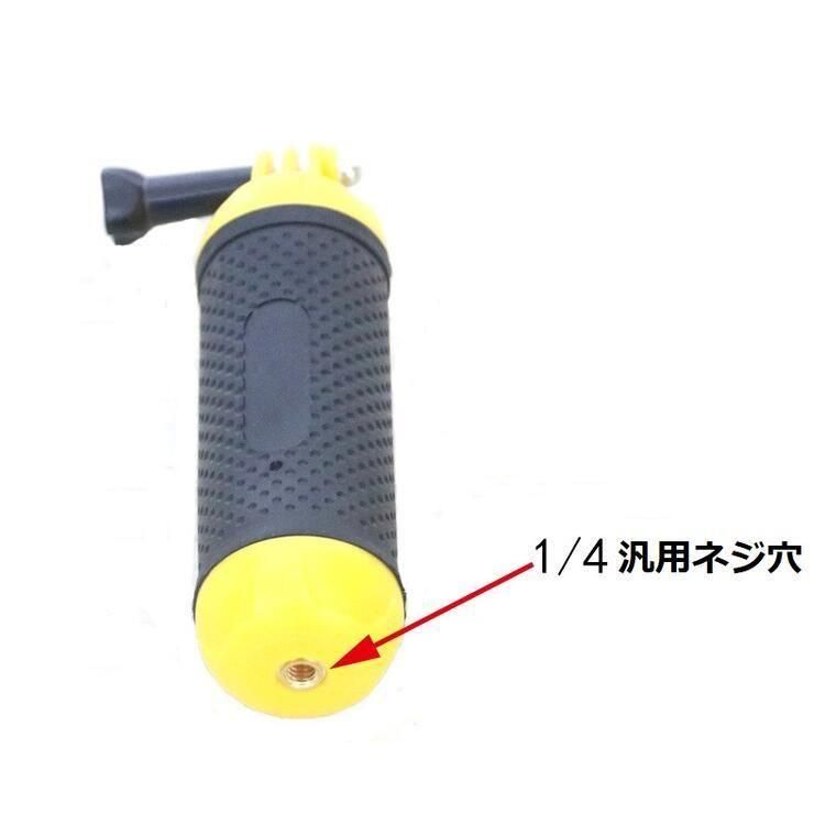 フローティングハンドグリップ 浮きハンドグリップ 1/4ネジスタンド対応 水中自撮り棒 フロートマウント 防水セルカ棒 アクションカメラ用アクセサリー  イエロー